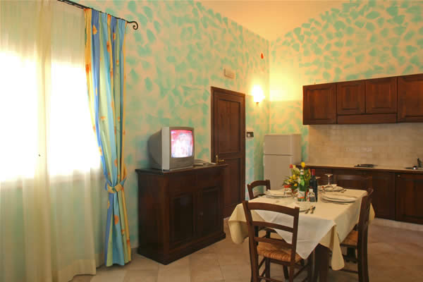 Appartamenti e villette bilocali di nuova costruzione, 3 stelleclimatizzati ed arredati in arte povera toscana, sono dotati di TV color e telefono diretto con possibilità di collegamento internet. Possono ospitare fino a 6 posti letto e sono composti da ampio soggiorno con angolo cottura in muratura e divano letto matrimoniale, disimpegno, camera matrimoniale e bagno.
